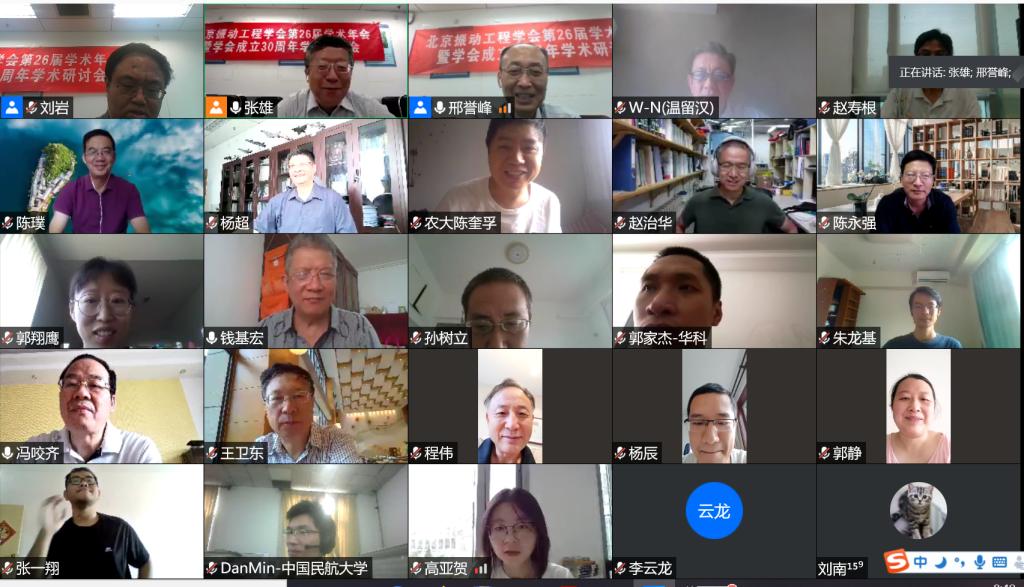 2020年8月29日,由北京振动工程学会主办,清华大学航天yl6809永利承办的第26届学术年会暨学会成立30周年学术研讨会成功举办。大会主席由学会理事长、yl6809永利集团邢誉峰教授和学会副理事长、清华大学张雄教授共同担任。由于疫情原因,本次年会以线上和线下相结合的方式召开,参会人数近百人,部分参会人员来自北京之外省份。线上采用的是腾讯会议,线下主会场设在yl6809永利。