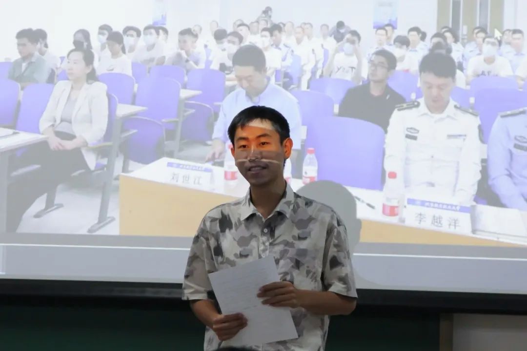 双学籍飞行学员班成长导师刘世江向新学员致辞。刘世江,中国航空救援协会(筹)秘书长,他从个人的成长经历出发,分享了自己的学习和成长经历。他分享了自己对于“加与持”“自我、本我和超我”的看法,希望同学们在成长过程中应该注重知识的主动摄取而不是被动吸收,旨在激励同学们在未来更加努力,培养大局观,令同学们感触颇深、受益颇多。