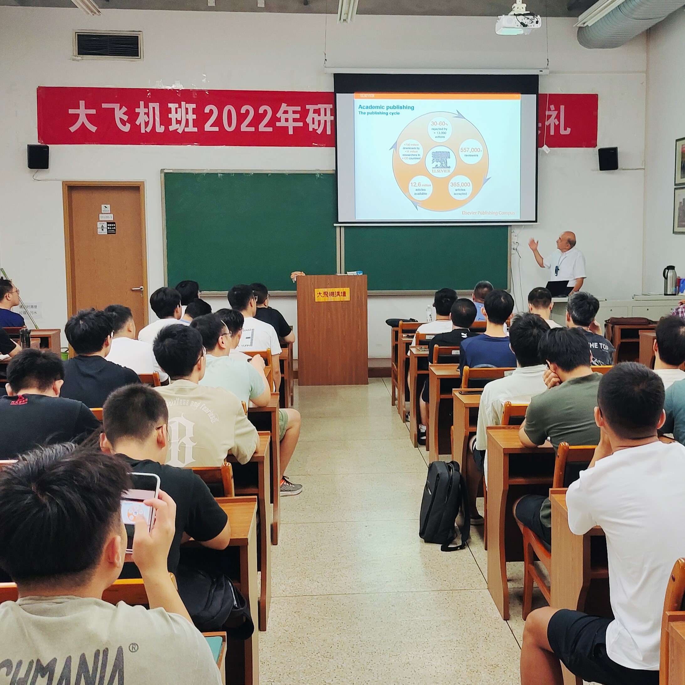 第一场报告题为“Aerospace Science and Technology期刊简介及手稿写作建议”,Ekaterinaris教授详细介绍了从论文准备阶段到论文发表阶段的注意事项,包括如何选择期刊、学术论文的通用结构等,并结合自身经验给出了论文的引言、方法、结果与讨论、结论以及参考文献等各部分的写作建议,在场的研究生同学均表示受益匪浅。