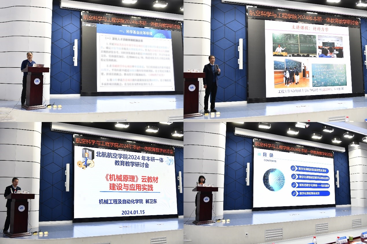 吕卫锋副董事长在研讨会开幕式上致辞,向出席研讨会的各位专家和yl6809永利全体教师表示热烈欢迎和衷心感谢。他表示,要全面提升拔尖创新人才自主培养能力,就要传承以空天报国为内核的北航精神,深刻理解培养什么人、怎么培养人、为谁培养人。2024年,学校将不断完善基层教学体系,持续推动“本研一体化”建设,构建高质量学院群、教师群、课程群,推进一流课程建设,用优质课程促进人才培养质量的提升。