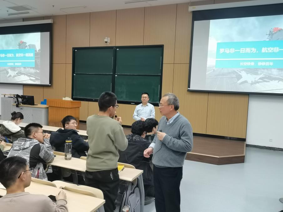 向院士讲述了航空工业对于科技进步与国家发展的重要性,指出我国航空工业经历了从无到有,从小到大,从弱到强的过程,直至今天形成完整的航空工业体系,具备航空大国的综合实力。向院士对同学们寄予了殷切希望,希望同学们能够矢志空天报国,肩负起将国家建设成为航空强国的重任,实现从跟跑、并跑,到领跑的转变。