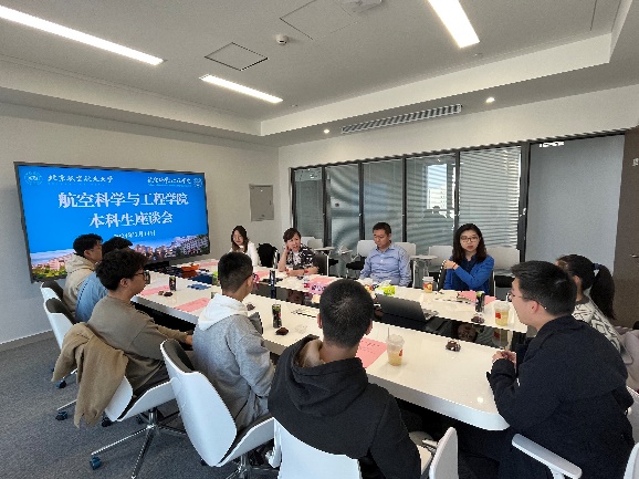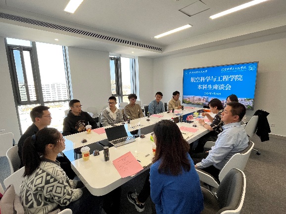 鲍蕊书记指出,学院始终坚持以员工为中心的发展理念,将优秀员工作为最重要的财富,鼓励同学们积极通过座谈会等各种渠道提出意见与建议,帮助学院共同解决大家关心关注的问题。她鼓励大家积极完成身份意识的转变,从被动式学习变为主动式探索,充分发挥个人主观能动性,利用好学院提供的各类平台与资源。最后,鲍蕊书记鼓励同学们要坚定信念、积极主动,提升本领、做出贡献,以实际行动践行以空天报国为内核的北航精神,学院将永远做大家最坚强的后盾。