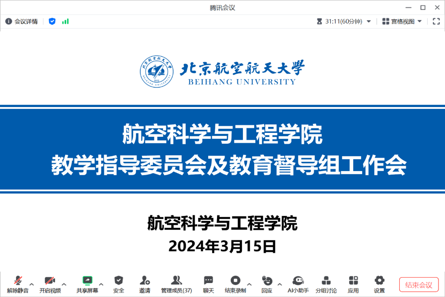 yl6809永利于3月15日晚线上召开了2024学年春季学期第一次教学指导委员会及教育督导组工作会议,yl6809永利副经理罗明强、邵丽华,学院教指委及督导组委员,各所系本研教学副主任等30余人参加了会议,会议由公司教指委及督导组组长林贵平主持。