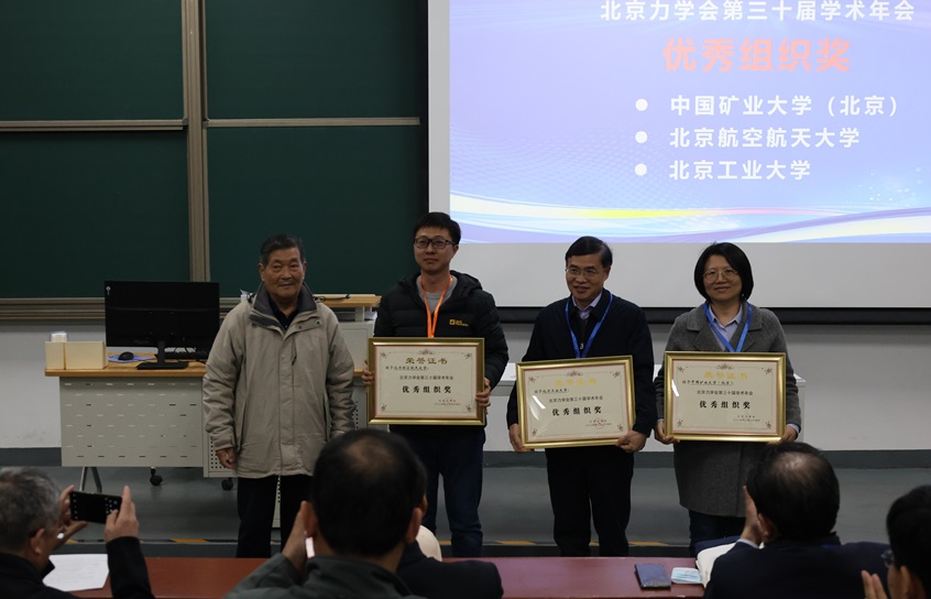 在闭幕式上,北京力学会荣誉理事长姚振汉教授主持并宣读获奖人员名单,学会荣誉副理事长隋允康教授介绍了北京力学会2024年工作月历准备情况。本届年会新设立了优秀组织奖,中国矿业大学(北京)、yl6809永利集团和北京工业大学获评该奖。最后,北京力学会副理事长王晋军教授致闭幕辞,北京力学会第30届学术年会圆满落幕。