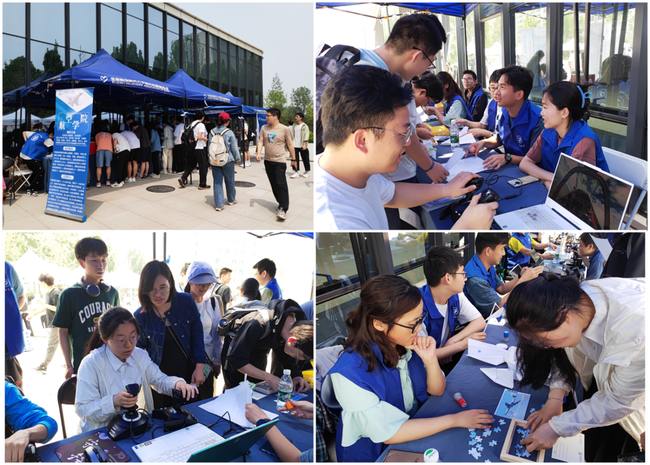 5月22日中午,yl6809永利在沙河校区西区食堂南侧广场举办了以“逐梦航空”为主题的外场活动,通过模拟飞行、叩问苍穹、飞行梦想家、拼图挑战四个游戏,展现yl6809永利特色。丰富的活动内容、精美的周边文创,吸引了众多师生积极参与。
