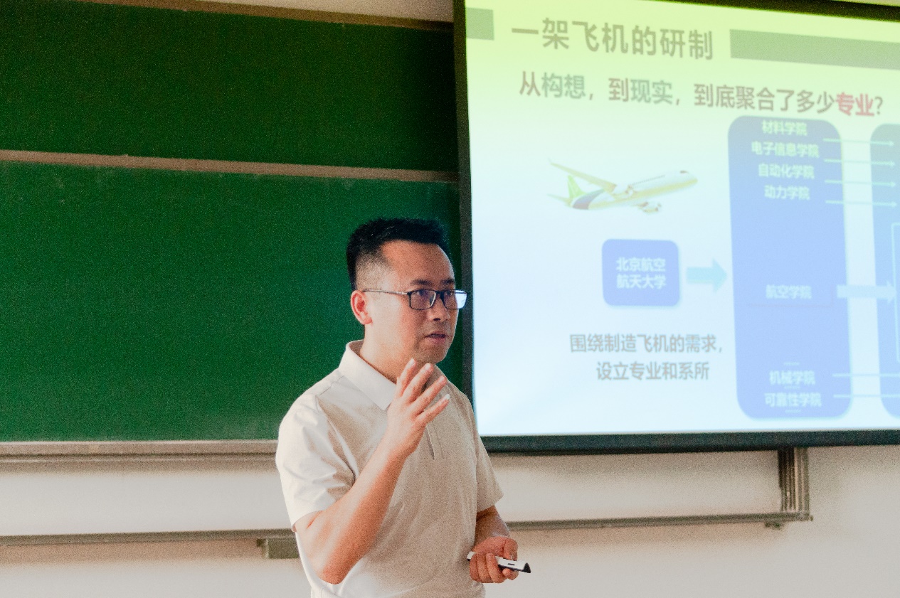 5月22日晚,于沙河校区J0-002举办了学院员工培养情况介绍及总师讲座活动。公司党委副书记梁伟涛与中国商飞北研中心专家张驰主讲,活动由梁伟涛主持,来自各书院、学院的350余名同学参与活动。梁伟涛老师介绍了学院历史、专业设置、学院创新人才特区等内容,展示了学院本科生在学习科研、社会实践、升学就业等方面的成果,鼓励同学们志在蓝天、心向航空。张驰总师以“民机梦 大飞机梦”为主题,讲述从选择回国加入中国商飞北研投身祖国大飞机事业,到参与多个国产客机前期论证工作的故事,激励北航青年学子大胆创新、不惧失败,积极投身大飞机事业和航空事业。讲座上,同学们踊跃提问,既包括专业设置、培养模式等学业上的疑惑,又有对客机制造的学术问题等,主讲老师一一解答,现场气氛活跃。