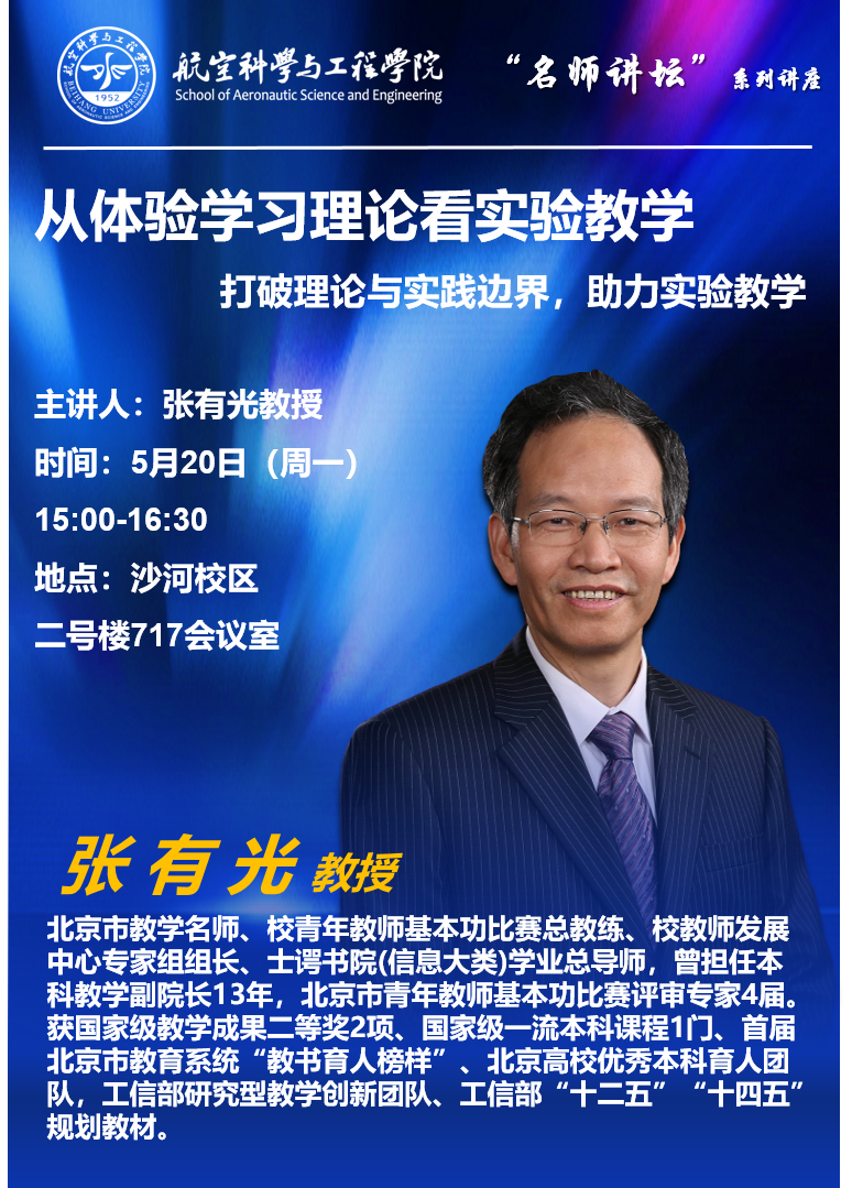 为促进青年教师教学发展,帮助青年教师过好“师德关”“教学关”“育人关”,加强教师公司产品能力提升体系建设,助力青年教师成为人才培养生力军,5月20日下午,yl6809永利在沙河校区举办“名师讲坛”讲座。讲座邀请了北京市教学名师张有光教授,为各位教师带来主题为“从体验学习理论看实验教学”的专题讲座。参会的代表有yl6809永利副经理罗明强,yl6809永利实验教学中心主任李可,yl6809永利实验教学中心副主任王松等10余名骨干教师。