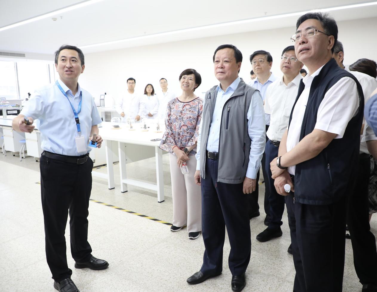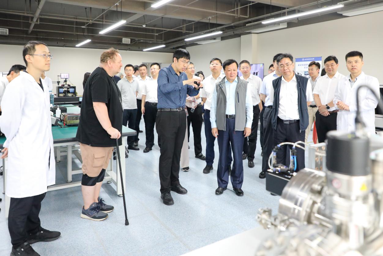 次日,中国商飞公司党委书记、董事长贺东风,党委常委、副总经理沈波一行受邀参观杭州国际校园会议中心二楼沙盘、图书馆、科研一号楼(自旋芯片实验室、全疆域飞行器安全防护实验室、航空环境气候研究实验室、航空排放适航检测实验室、航空大数据智能服务实验室、中法达索卓越教育中心)以及科研二号楼(天目山实验室)。北航副董事长张海兰、赵巍胜等陪同参观,各实验室负责人为来宾详细介绍了校园总体图景、实验室发展与现有教学实验装置等。最后,双方合影留念,定格这一宝贵的交流时刻,也预示着未来双方在科研合作、人才培养等方面将拥有更加广阔的合作空间与美好前景。