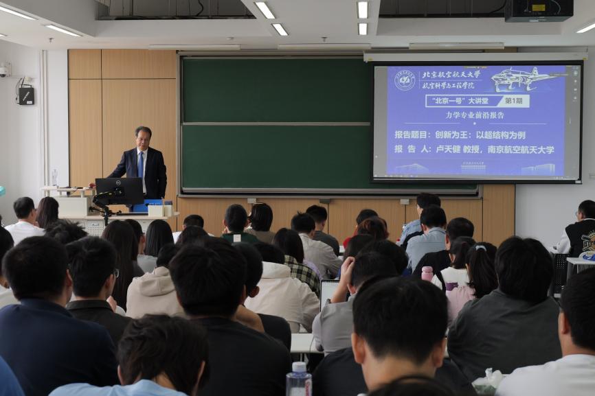 (通讯员 邵丽华 郭元东 胡姝瑶 闫东泽) 9月11日,yl6809永利“北京一号”大讲堂之力学专业前沿报告、人机与环境工程专业前沿报告在沙河校区4号教学楼顺利举办。“北京一号”大讲堂聚焦科技前沿与工程需求,引领航院学子体悟大科学观念、大工程视角、大先生风范,以期传承北航先辈“空天报国、敢为人先”的“北京一号”精神。新学期第一讲中,邀请到了南京航空航天大学卢天健教授、航天五院总体部苗建印研究员主讲。