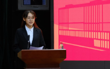 尹思文作为本科生新生代表发言,分享了自己与航空的情缘,讲述了自己追前辈身影,以报国之志描绘航空蓝图的志向。她号召朋辈坚定志向,脚踏实地,共同逐梦蓝天,扬少年芳华,以勤学创新勇立时代潮头。