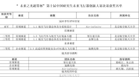 “中国研究生未来飞行器创新大赛”是“中国研究生创新实践系列大赛”主题赛事之一,是由教育部学位管理与研究生教育司指导,中国学位与研究生教育学会和中国科协青少年科技中心主办,中国宇航学会、中国航空学会联合主办。大赛以“创新改变未来”为理念,围绕飞行器技术创新,旨在通过竞赛和激励的方式,提高广大研究生在航空航天领域科研创新能力、工程实践能力,为业界发掘培养复合型、高素质拔尖创新人才。