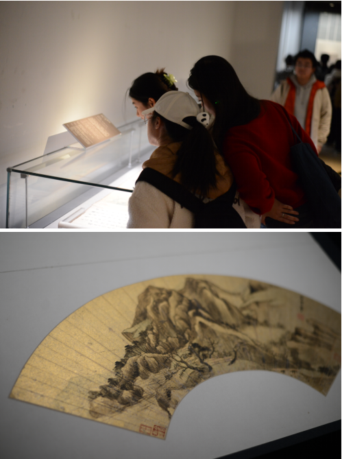 在老师的引导下,同学们首先前往五楼,参观了“墨韵文脉”精品展。这一展览是中国美术馆和广州艺术博物院联袂举办的,展览依托于广州艺术博物院丰富的藏品资源,以展品为媒介,围绕“墨韵文脉”这一主题,向观众讲述岭南古代美术传承与发展的历程。展品不单包括岭南明清时期优秀书画家的佳作和粤藏古代各地名家名作,展示了岭南古代艺术家是如何传承传统艺术,又是如何转化和创新的。