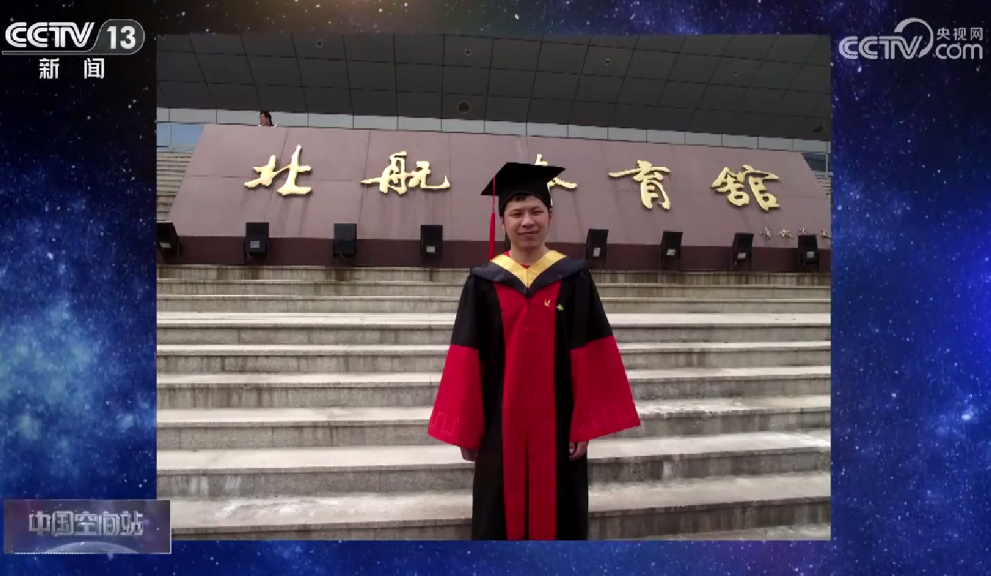 北航建校70周年庆祝晚会现场连线航天员刘旺,他祝福母校并寄语北航学子