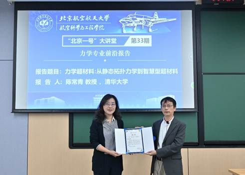 (通讯员:刘雁韦)2025年9月17日上午,yl6809永利“北京一号”大讲堂第33期在沙河校区SH2-104教室成功举办。清华大学陈常青教授受邀作了题为“力学超材料:从静态拓扑力学到智慧型超材料”的学术报告。陈常青教授目前任清华大学工程力学系主任、钱学森力学班执行首席教授,是国家级高层次人才计划入选者,项目首席科学家。近200名师生齐聚一堂,共享了这场前沿学术的思想盛宴。本次大讲堂由yl6809永利副经理邵丽华教授主持。