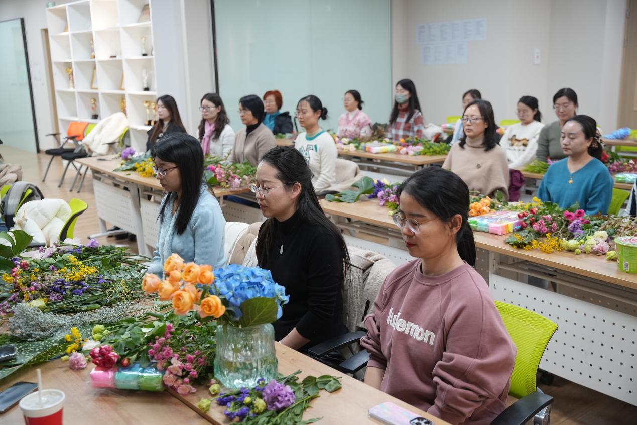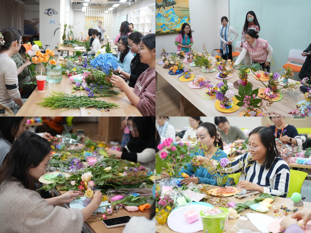 工作坊遵循“安驻与唤醒-释放与转化-赋能与整合-祝福与前行”的递进式流程,让教职工在沉浸式体验中完成心灵疗愈。在“正念启动”环节,通过建立安全契约、开展触觉练习,帮助大家快速沉静身心、觉察当下状态;“压力造型” 环节中,教职工运用创意材料塑造压力的“重量”与“形态”,在动手创作中直观呈现内心困扰,实现情绪的初步释放;核心环节“指尖繁花”里,大家以色彩为墨、线条为语,将压力转化为创作灵感,在画笔流转间探索自我内在资源,构思“爱自己的 N 种方式”;最后的分享与见证环节,教职工们在“不批评、不评价、不分析、不建议”的安全氛围中,自愿分享创作感悟与心灵收获,彼此支持、相互赋能,让温暖与力量在交流中传递。