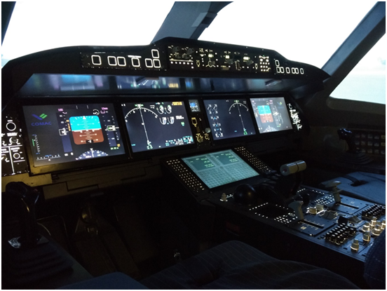 黄俊教授团队在项目研制过程中进行了控制面板硬件电路的研制,自行设计了部分驾驶舱开关部件,实现了具备实时动态显示功能的多功能显示器及备份仪表。完成了模拟飞行平台的软件系统架构开发,实现了基于虚拟摇杆的正副驾驶操纵叠加逻辑。该驾驶舱人机工效评估平台能够真实模拟民用飞机起降、转场等飞行任务,各项功能满足并超过了最初签订技术协议中的全部内容。上飞院认为该平台系统架构合理,各项功能完善,超出了项目委托方的预期。该平台作为人机工效评估的重要实验设备,在飞机设计以及验证试验中能够发挥很大的作用。在C919即将首飞之际,将为国产大飞机驾驶舱人机环境设计提供有力的支撑。