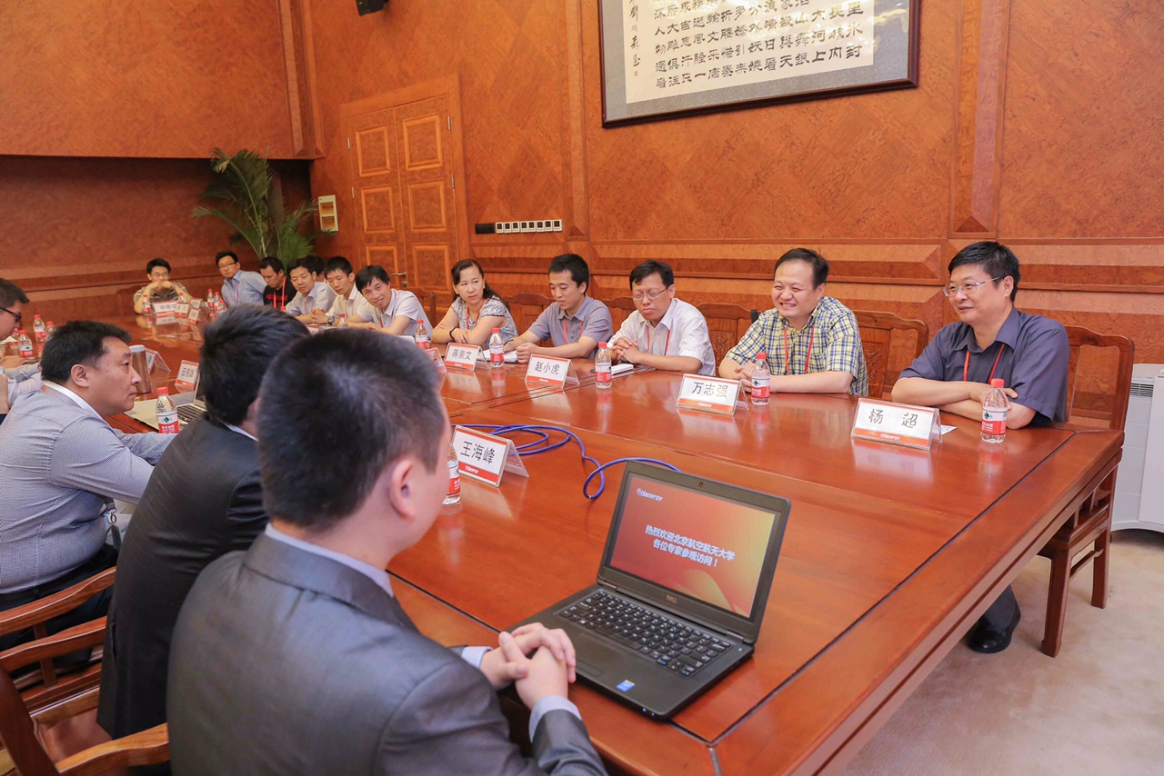 在汉能控股集团会客厅,杨超经理一行与汉能商用无人机事业部副总裁王海峰、汉能封装中心技术总监夏平、汉能产品开发集团CEO高鹏等相关部门领导举行座谈。汉能商用无人机事业部技术经理骆升平向我方代表团介绍了汉能控股集团发展历程以及商用无人机事业部的发展状况与未来构想。国家实验室办公室副主任万志强教授向汉能方面介绍了yl6809永利在学科、团队、科研等方面的相关情况,以及学院为落实国家实验室相关重大系统建设正在着力推进的创新团队计划。