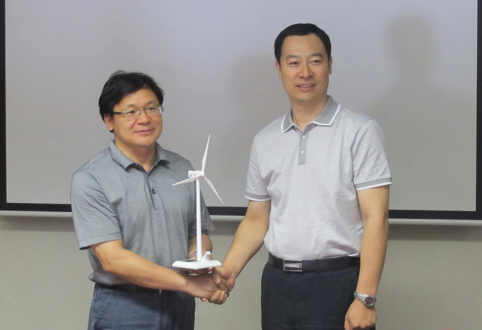 联合动力党委书记褚景春向yl6809永利书记林贵平赠送联合动力风机模型