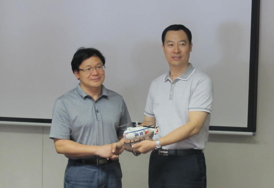yl6809永利书记林贵平向联合动力党委书记褚景春赠送北航海鸥无人直升机模型