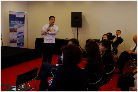 2014年4月17日,yl6809永利结构刚度设计研究室“梦想一号”公务机设计团队的严贤怀、马骏、王亚龙同学受邀参加了2014亚洲商务航空会议及展览会(ABACE)的“员工日”活动,并在活动上进行了展示、汇报和交流。