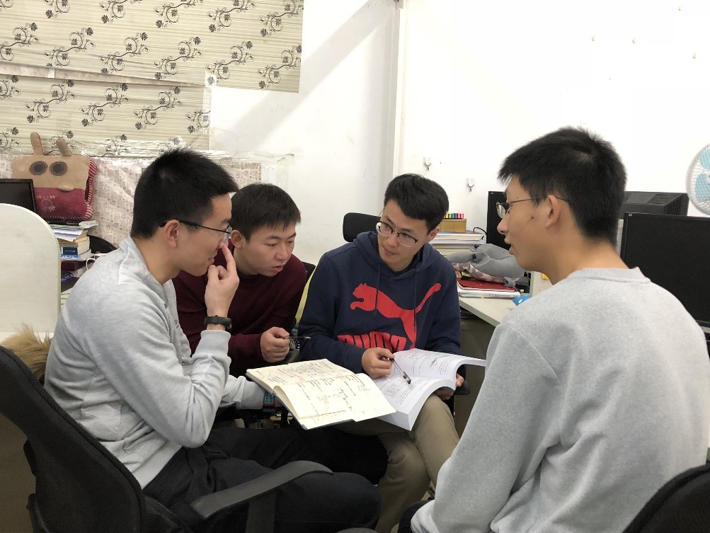自步入大学的第一天起,“学习”二字就一直被421宿舍的四个小伙子牢记心中。课上,他们认真听讲,积极提问;课下,他们相互讨论,答疑解惑。周末清晨,他们会早起去自习室回顾一周的课程;数分课堂之外,他们会聚在一起讨论难点;考期来临之前,他们相互借鉴分享学习资料;航概考试前夜,他们会躺在床上相互抽考。一次次思维碰撞,他们取长补短;一轮轮集体自习,他们相互督促。知识就这样在脑海中根深蒂固。