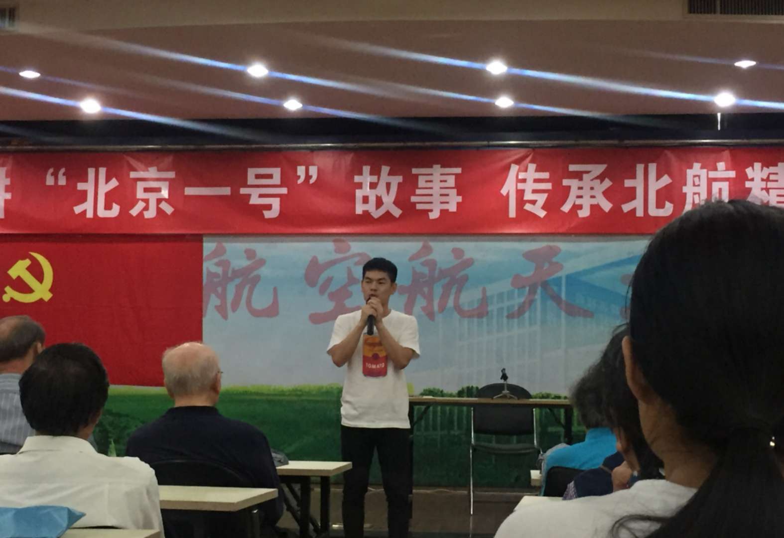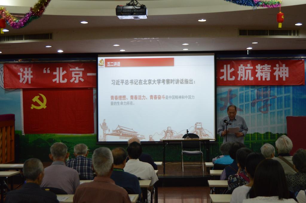 活动开始,退休教师联合党支部杨乃宾老师强调了习近平总书记在北京大学师生座谈会上讲话的重要内容,并向党员同志们提出了学好“五二讲话”、牢记北航校风、传承北航精神的号召。之后,全体老师与员工党员一同观看了记录“北京一号”研制过程的纪录片——《直上云霄》,纪录片勾起了老师们的回忆,几位老师先后跟大家分享了参与研制“北京一号”的故事。