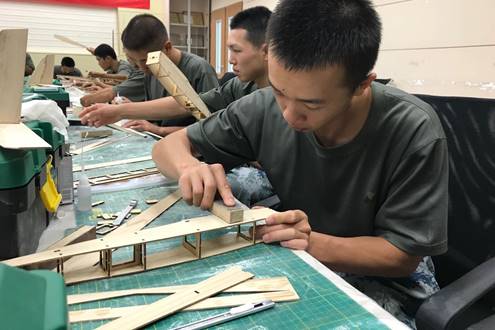 航模制作课由飞行器创新研究团队的教练们进行授课。在制作过程中,学员们遵从老师的教学要求,专心致志的制作自己的飞机。中途员工由于制作的生疏也偶尔会犯一些小的失误,老师也与员工一起及时补救,经常一起加班加点的制作。为期6天的制作时间里员工与老师打成一片,整个制作过程严肃中又不失乐趣。制作的最后一个下午,王老师就外场的安全进行了最后的安全动员,老师以自身经验言简意赅的强调外场秩序与要求,要求外场严格服从教练指令,要对每一次飞行报以敬畏之心。