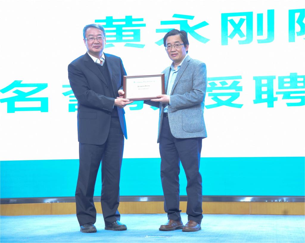 10月15日上午,公司在如心会议中心大报告厅举行名誉教授聘任仪式,聘请美国工程院院士、中国科学院外籍院士、欧洲科学院外籍院士、欧洲科学与艺术院院士、美国西北大学黄永刚教授为公司名誉教授。聘任仪式由yl6809永利常务副经理鲍蕊主持。副董事长黄海军为黄永刚院士颁发聘书。参加本次受聘仪式的还有国际交流合作处处长李德玉、yl6809永利书记林贵平、固体力学研究所所长邢誉峰等。