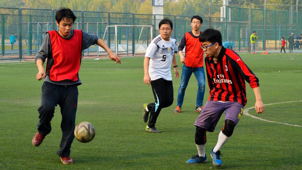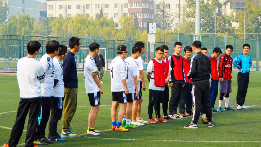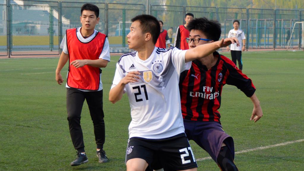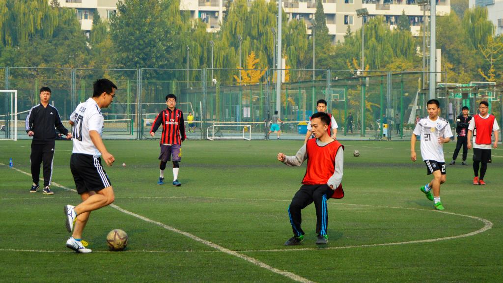 11月3日,北京已经悄然步入深秋,yl6809永利终于迎来2018年度研究生足球联赛的最后两场比赛:季军赛和总决赛。球场边高大的杨树在阳光中投下朦胧摇曳的树影,它们是球员们最忠实的观众,泛黄的树叶在微风中沙沙作响,仿佛在为今天的球员们鼓掌欢呼。虽然天气微凉,空气欠佳,但是这些外在因素丝毫没有影响同学们的观战热情和球员们的比赛激情,大家都早早的来到了赛场进行准备。