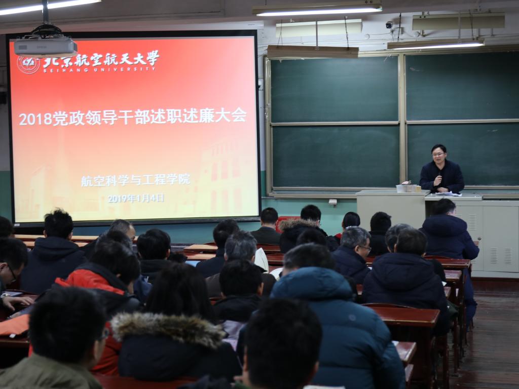 2019年1月4日下午14:30,2018年度党政领导干部述职述廉大会在一号教学楼201教室召开,全院教职工100余人参加会议,会议由党委书记林贵平主持。
