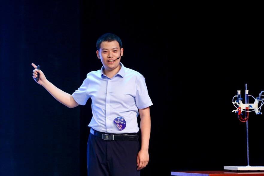 王依兵自主命题讲解的题目是《飞机的长“鼻子”是做什么用的》,他用生动的语言和有趣的实验向观众阐释了飞机空速管的测量原理,展示了北航学子丰富的科学知识储备和良好的科学素养。