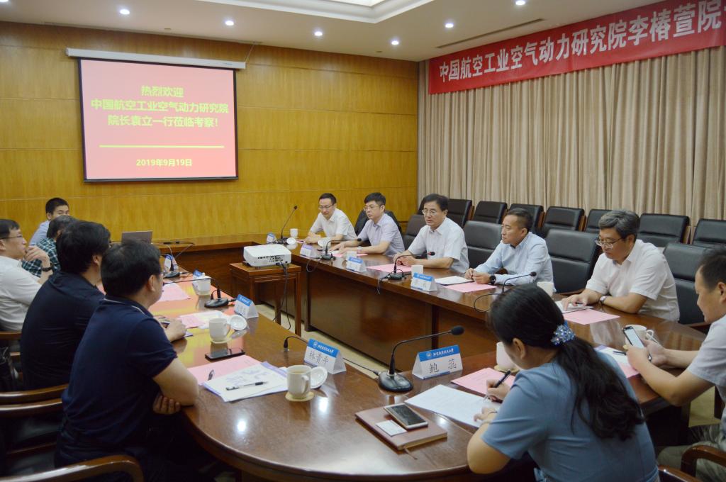 (通讯员 蒋崇文、刘哲)2019年9月19日,航空工业气动院经理袁立、党委书记李晨一行来北航洽谈合作事宜。航空工业气动院副经理赵海征、副经理崔晓春、副总工程师钱战森,北航副董事长陶智、中国工程院院士李椿萱、人事处副处长刘克松、科研院军工处副处长刘智良和公司党委书记林贵平等领导出席会议。会议由yl6809永利常务副经理鲍蕊主持。