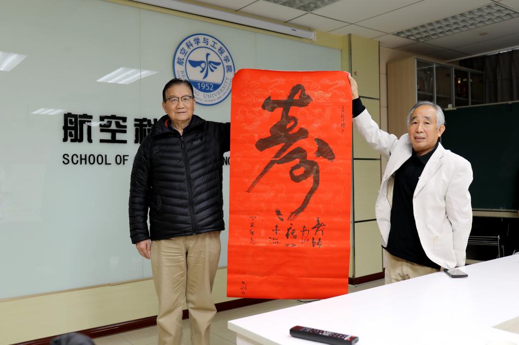 随后员工返校召集人郭义明老师,代表4551班班向王浚院士赠送了寿字条幅,衷心祝愿王浚院士健康长寿。随后大家进行了交流、座谈,共同追忆昔日校园生活,重叙师生友情。有的同学四十二年都没有见面,互相问候,很是惊喜和激动,同时大家也对yl6809永利的未来也寄予了厚望。员工们对学院的精心安排、热情接待表示感谢。