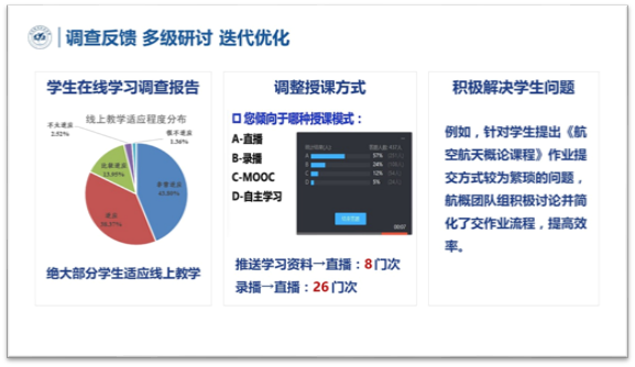 “空气动力学A”是国家级精品课,由北京市教学名师刘沛清担任课程负责人,刘老师认为,网络教学难以看到员工的上课状态,因此对老师们来说是个挑战。课程团队做了多种方案,也投入更多的时间备课,多次组织经验交流会,讨论如何上课、如何进行课外管理,大家共同的目标是恢复教学正常秩序,保障教学顺利进行。结束第一周的网络授课任务之后,刘老师感慨:“我觉得要加强对员工的综合管理,看员工的反馈情况,从作业中看出问题,用微信来反映问题,老师总结答疑,来提高员工兴趣和自学能力。因为直播授课不太好把控进程,所以会增加课堂提问,严格考核,认真作业。”