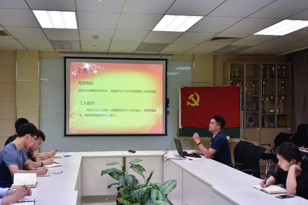 2018年是马克思诞辰200周年,习近平总书记在中共中央政治局第五次集体学习时强调,全党要深刻感悟和把握马克思主义真理力量。5月2日,yl6809永利硕士17051党支部集体学习了《共产党宣言》,并以中央编译局王学东研究员的讲解为切入点,对马克思主义进行了深刻系统地学习。