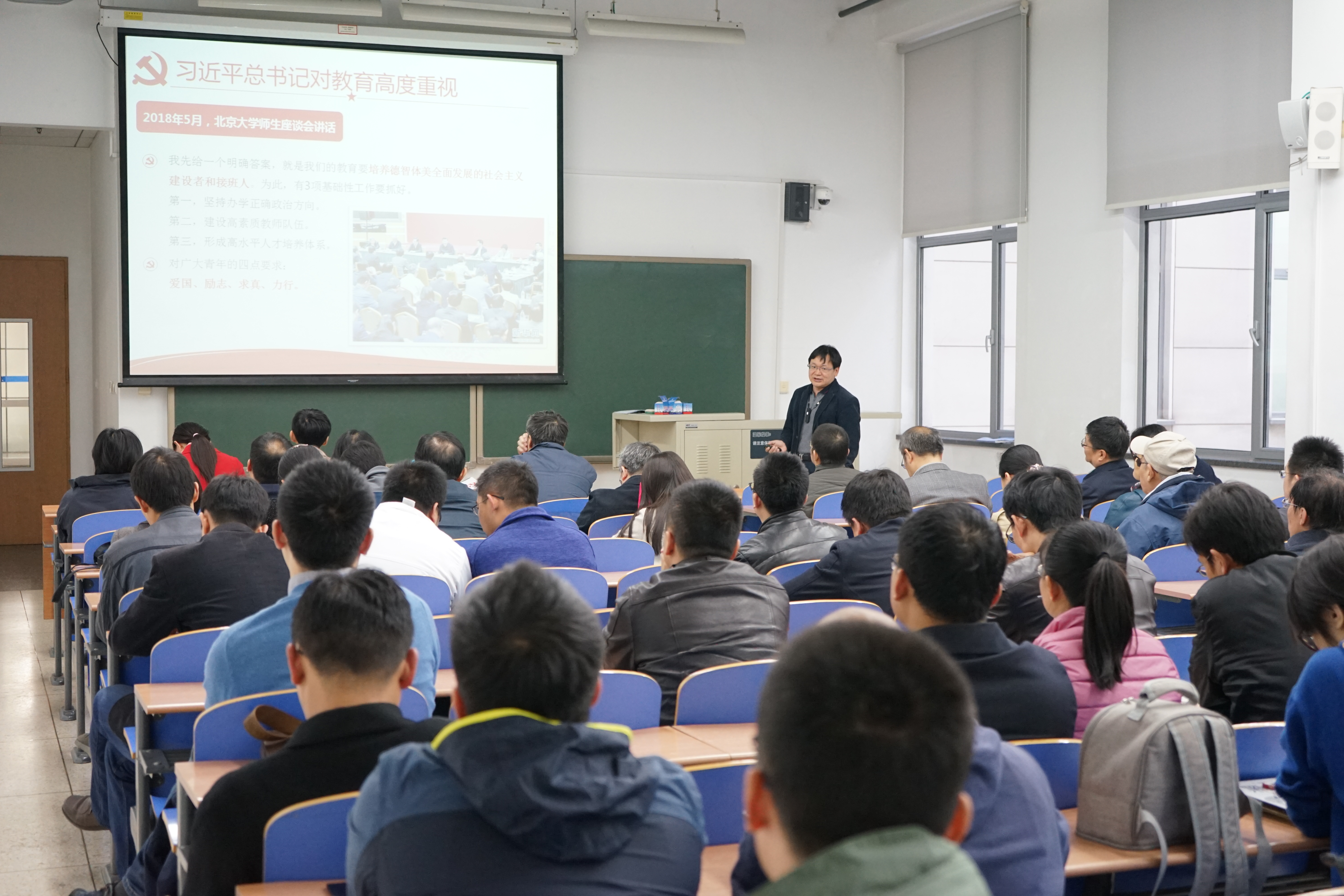林书记强调,作为高校教师,我们要认真学习领会总书记讲话精神,以总书记提出的“四有好老师”、“四个引路人”和“四个相统一”标准来严格审视自己,静心教书、潜心育人,以时不待我、只争朝夕的奋斗精神扎实行动,贯彻落实好全国教育大会精神,加快“双一流”建设。
