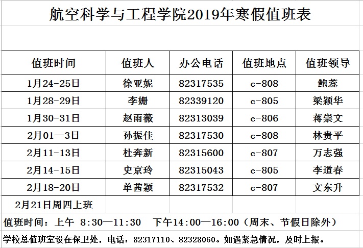 2019年寒假值班表
