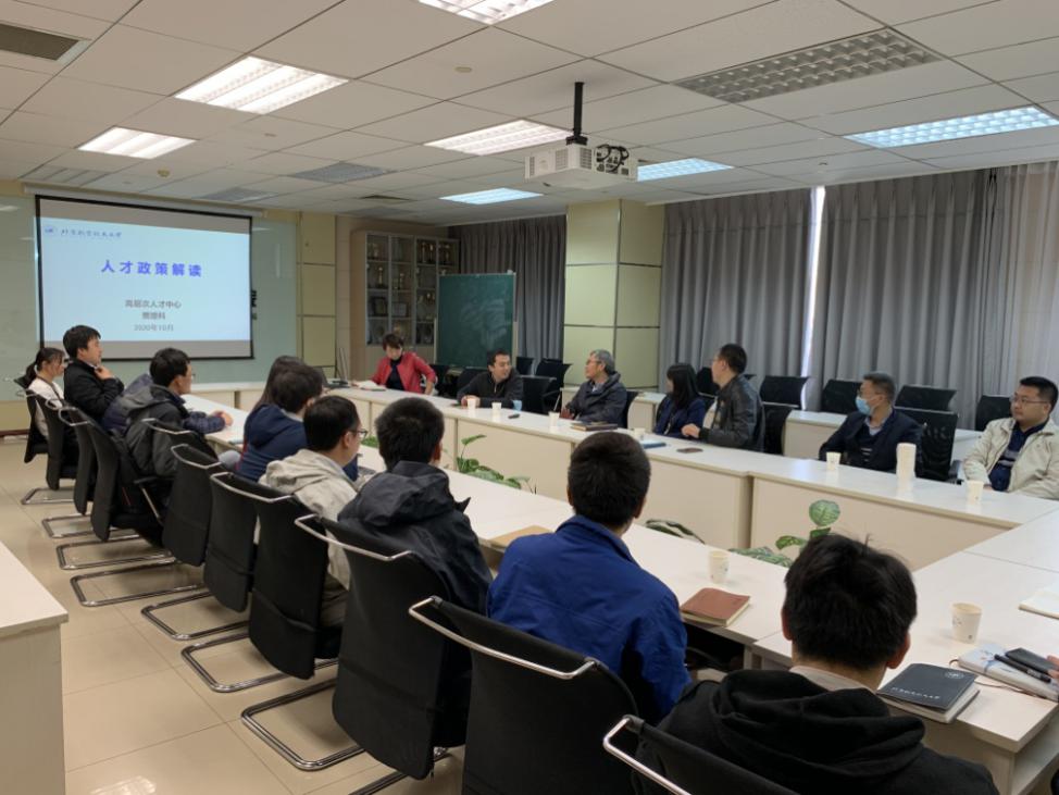 (通讯员 张勇波)10月21日,yl6809永利工会在新主楼C708组织召开了人才政策学习交流会,本次交流会邀请了人事处高层次人才中心副主任贾增科老师做专题报告。参加会议的有yl6809永利副经理蒋崇文、副经理陈玉丽,院工会主席高振勋以及部分青年教师。会议由高振勋主持。