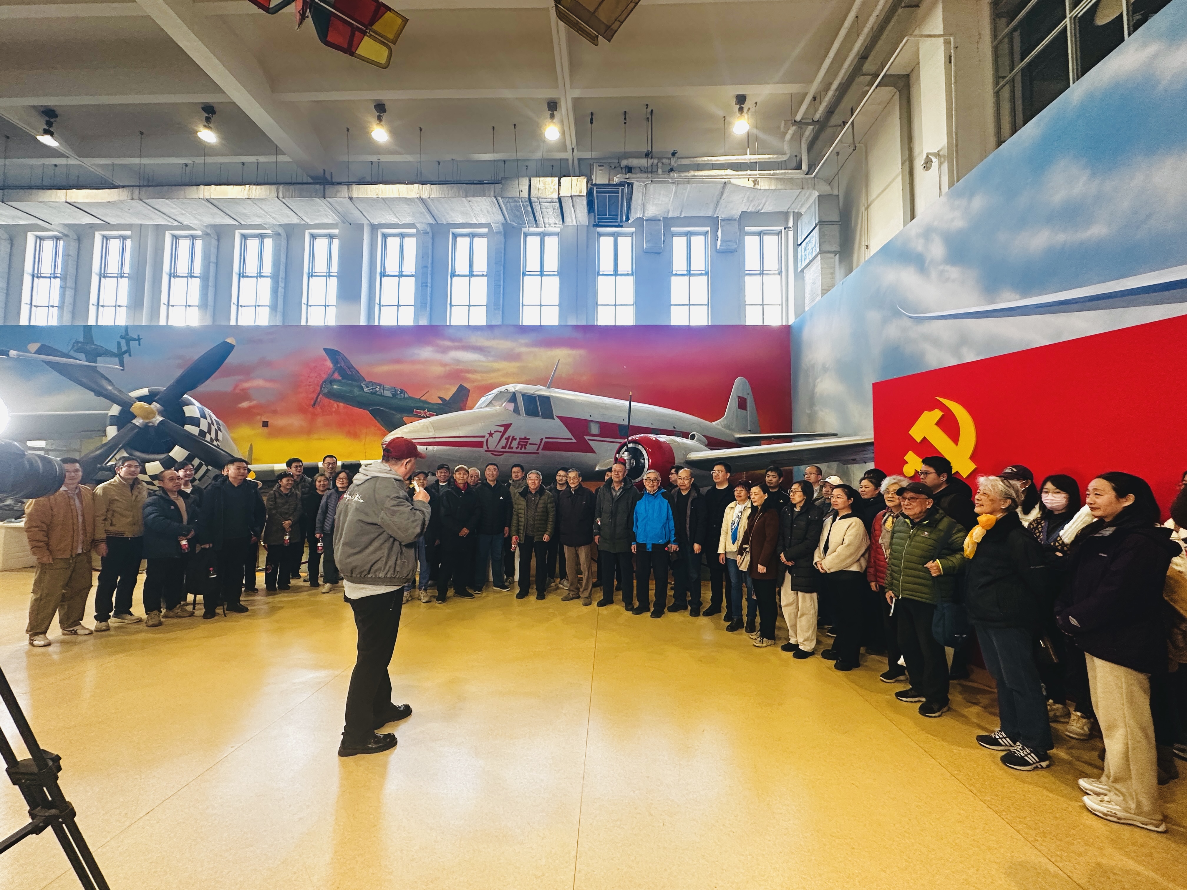 老师们首先来到了航空航天博物馆,博物馆首席专家、退休老师韩国军副教授带领大家回顾了作为北航人心中一面精神旗帜的北京一号飞机从设计、实验、制造、试飞的100天艰苦卓绝、协作奋斗的历程;流体所退休老教师周伯诚教授讲述了自己当年参与“北京一号”设计图纸绘制的点滴;流体所退休老师张华教授向大家介绍了最新被收入博物馆馆藏的、北航建校初期建立的D-3二元直流式风洞的历史、结构、功能以及测量方法等。几位退休教授的介绍激起了中、青年教师们的兴趣,引起了进一步的询问和热烈的讨论。