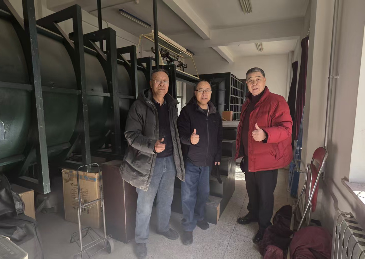 在即将被拆迁的“风洞馆”(第6馆),D-1、D-3和D-4风洞已经搬迁,老师们参观了尚未拆迁的D-2直流式三元风洞,这个风洞与D-1风洞一样是北航建校初期从原清华大学航空系搬迁至北航的,不仅具有重要的航空文物价值,而且在北航几十年的教学科研中发挥了重要作用。D-2风洞上方的三分量塔式机械天平既简单又直观,可以测量三维机翼的升力、阻力和纵向力矩,许多参观的青年教师围绕着该天平用砝码进行尝试,并展开了热烈的讨论。流体所退休老师王海文副教授找出了自己早年设计、并带领员工开展的不同钝体的阻力系数测量实验模型,不禁百感交集。