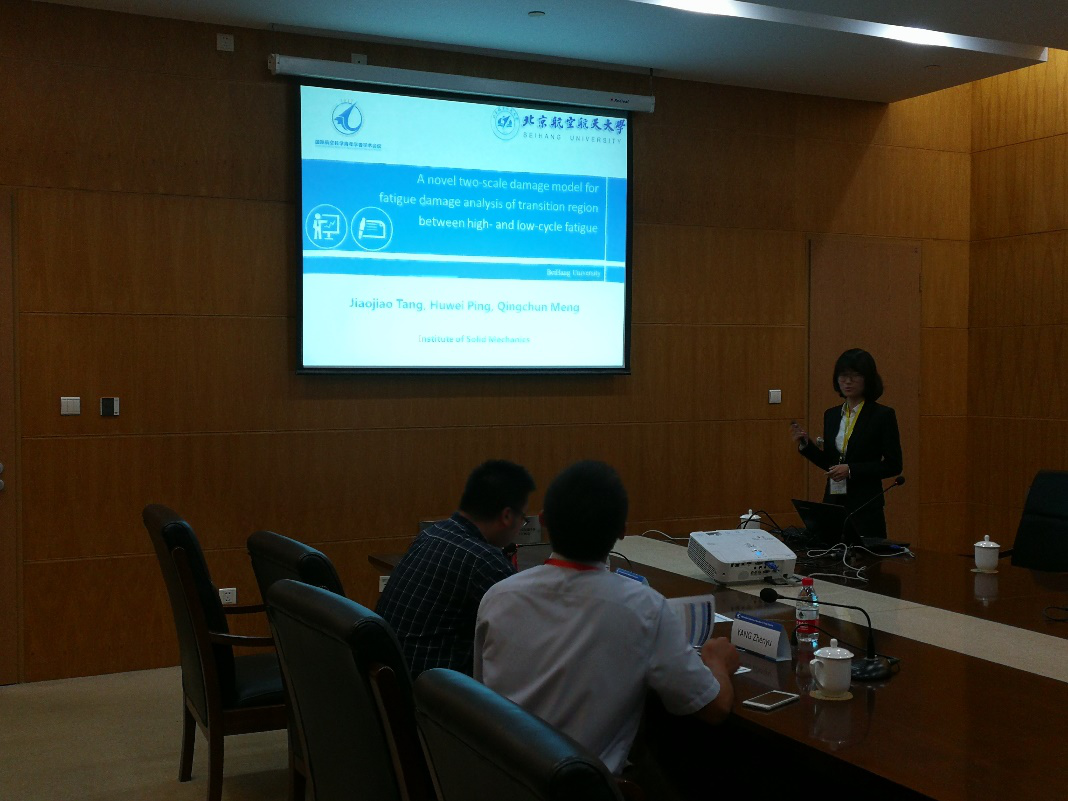 唐娇姣的报告题目是《A novel two-scale damage model for fatigue damage analysis of transition region between high- and low-cycle fatigue》。