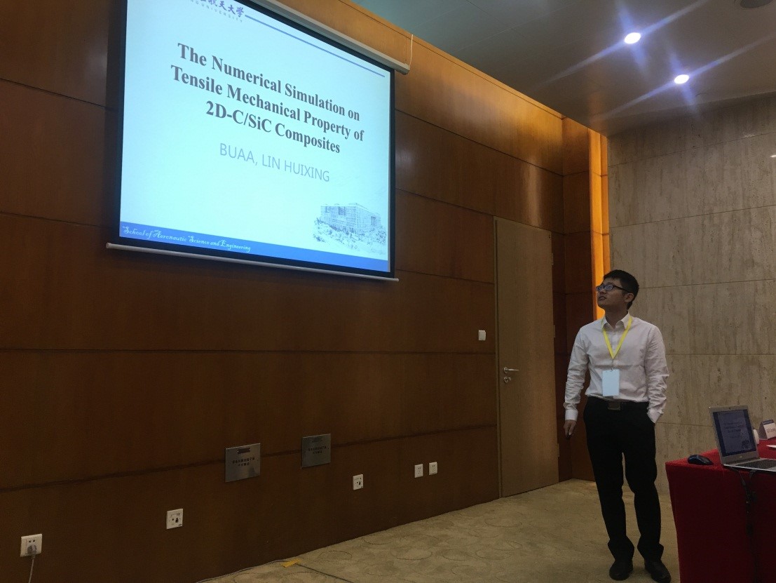林慧星的报告题目是《The Numerical Simulation on Tensile Mechanical Property of 2D-C/SiC Composites》。