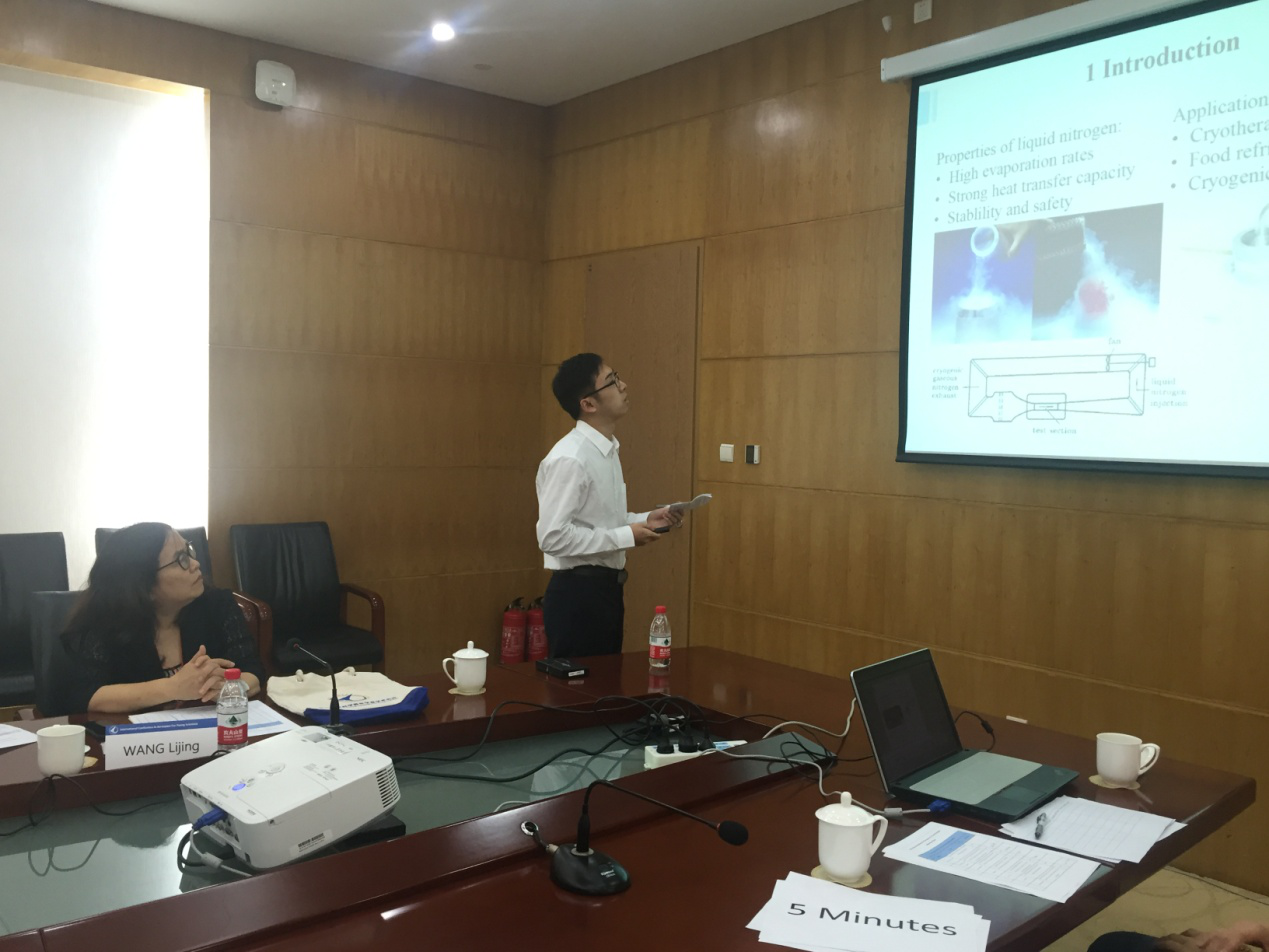 李毅舟同学的报告题目是《Numerical Simulation Research on Evaporating Characteristics of Liquid Nitrogen Spraying Droplets》。