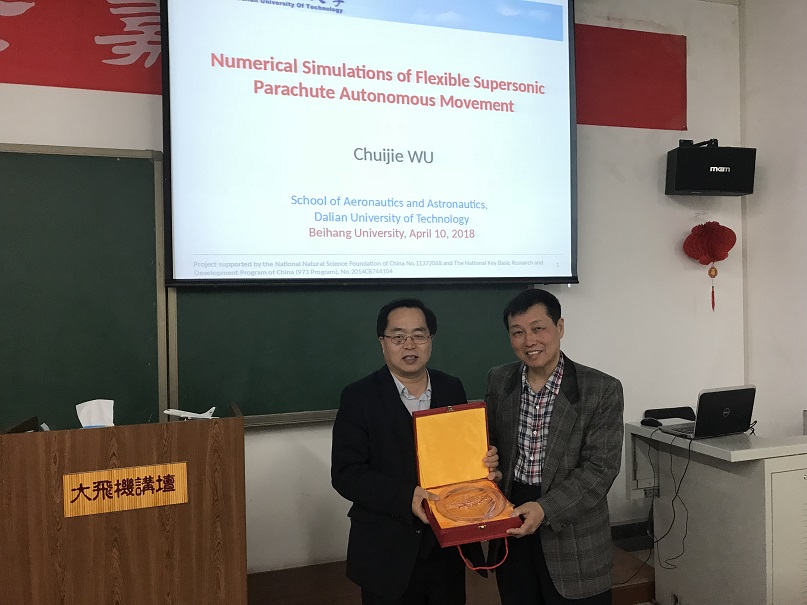 本次讲座中,吴锤结教授的报告主要分为四个部分。第一部分为航天器返回舱降落伞的数值模拟计算介绍,主要介绍了用于火星探测的航天器返回舱降落伞的数值模拟计算研究结果。第二部分为空间碎片运动及控制,吴教授从天宫一号再入大气层的热点问题引入,介绍了空间碎片的运动情况以及使用绳系结构的控制方法。第三部分为湍流研究中的若干问题,主要介绍了湍流模式中存在的各项难点问题。第四部分为科学与艺术的感悟,吴教授通过自己的科研经历及绘画成果,向我们展示了科学与艺术相互结合的美丽。