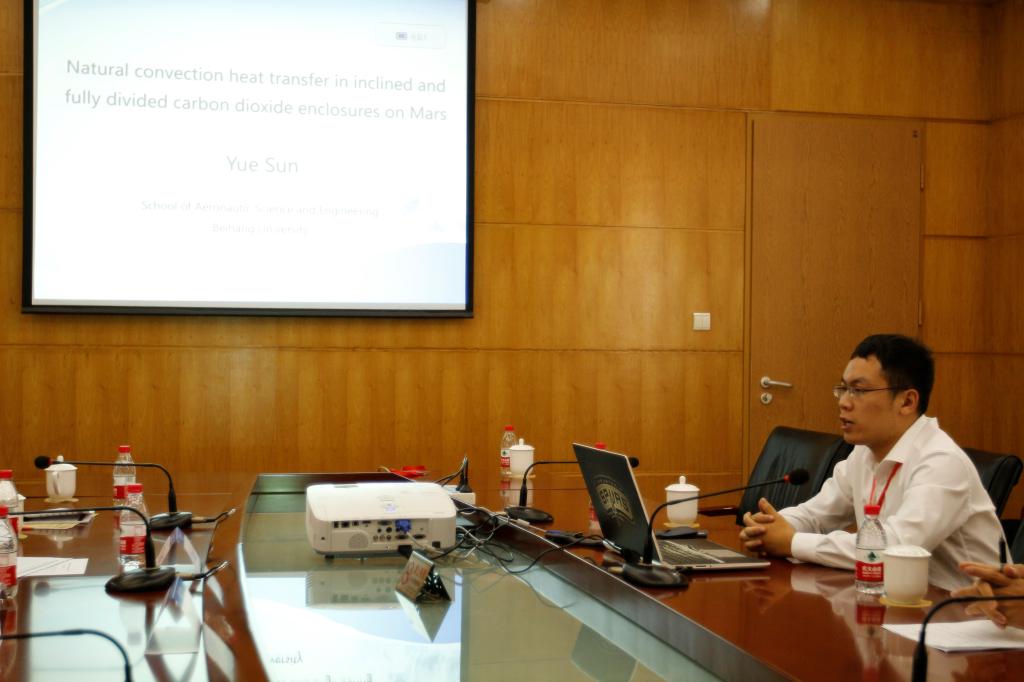 孙悦的报告题目是《NaturalConvection Heat Transfer in Inclined and Fully Divided Carbon DioxideEnclosures on Mars》。在这个报告中,将讨论典型因素对低气压二氧化碳有限夹层换热特性的影响机理。随着角度和隔板的改变,在现有单环流区域与伯纳德流区域之间,提出过渡流区域的概念,并分析了三个区域的流场分布以及换热特性的差异。