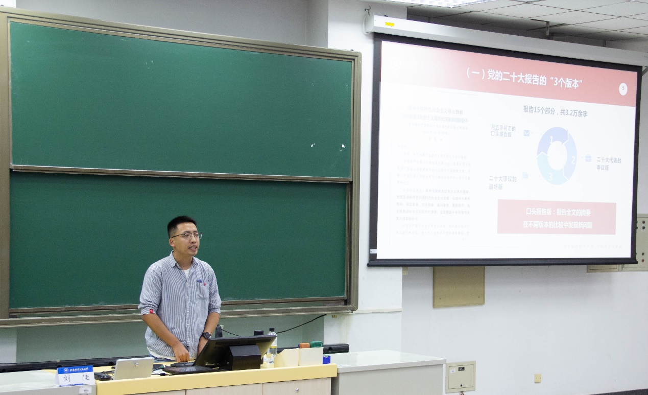 青春与时代相辉映,青年与祖国共奋进,11月10日晚,为全面学习贯彻党的二十大精神,yl6809永利邀请到马克思主义学院助理教授刘佳开展了“伟大思想引领伟大变革——党的二十大精神导学”的专题讲座。yl6809永利常务副经理潘翀出席并作总结发言,本科生、研究生党员共150余人参加。