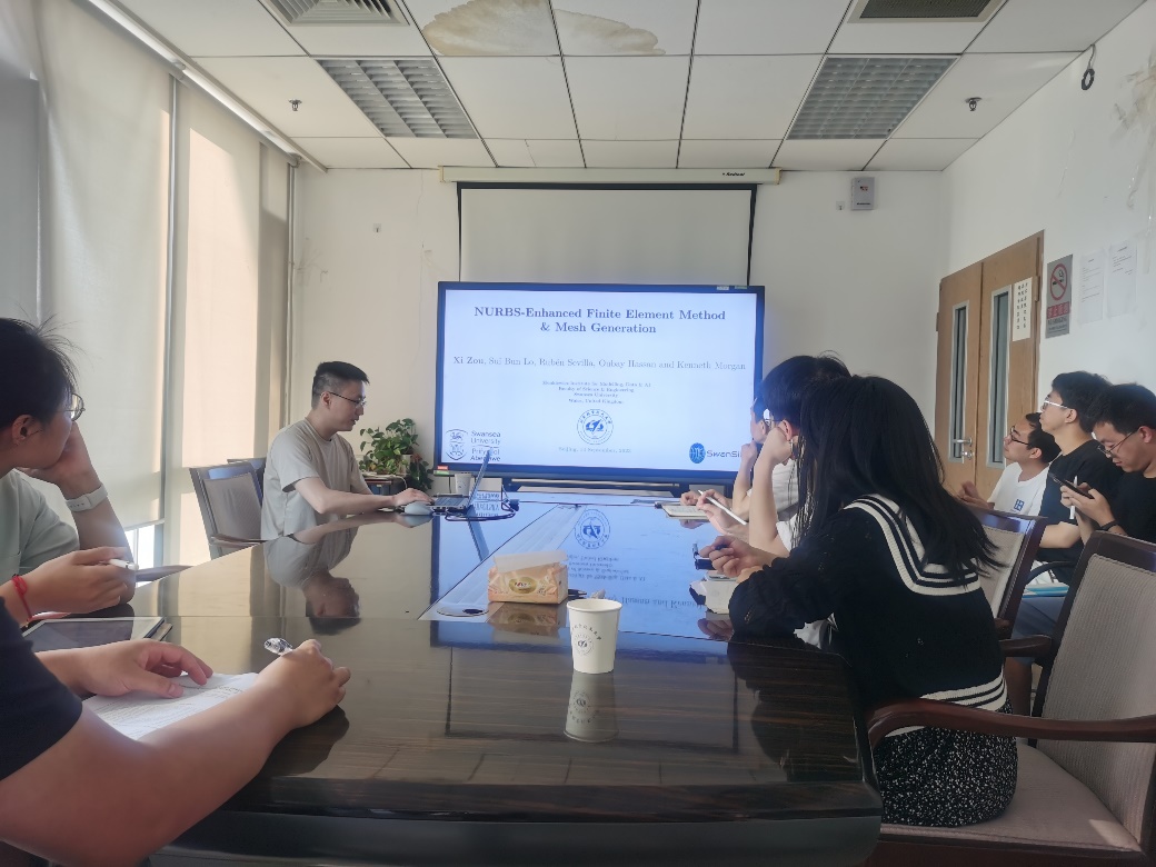 (通讯员 胡伟平)2023年9月14日,受公司胡伟平副教授的邀请,斯旺西大学邹希老师到公司固体力学所做学术交流报告。报告的题目为“NURBS-Enhanced Finite Element Method & Mesh Generation”。报告由胡伟平副教授主持,来自公司及机械学院的师生共二十余人听取了报告。