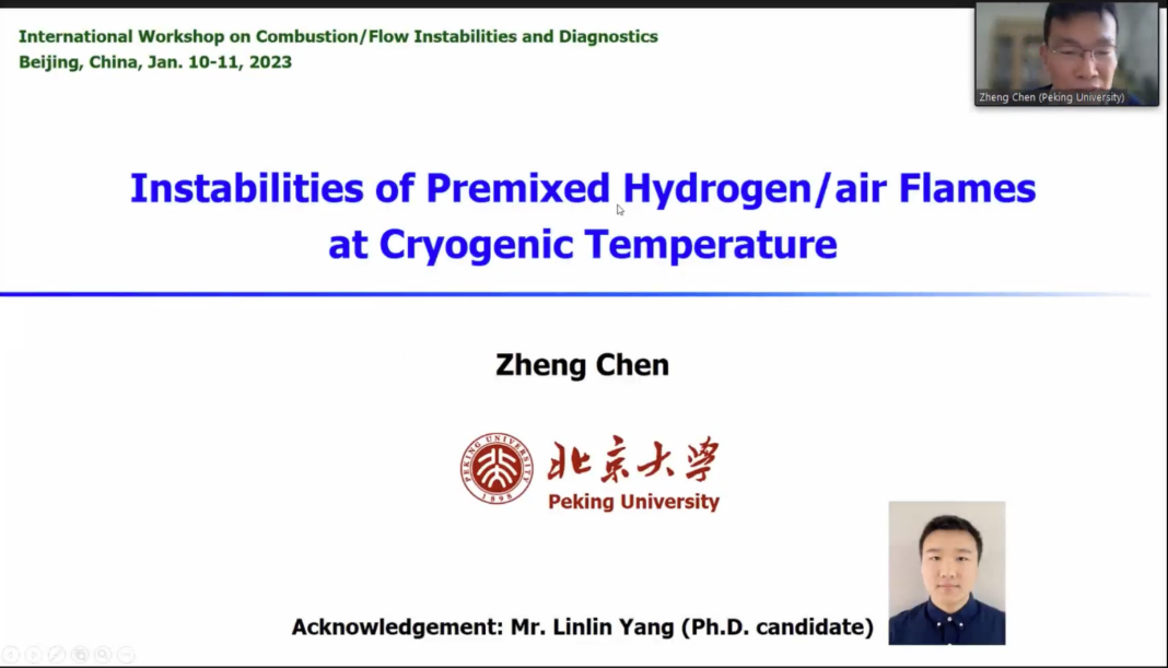 中国北京大学的陈正教授以《Instabilities of premixed hydrogen/air flames at cryogenic temperature》为主题,围绕超低温条件下预混氢气/空气稳定性的问题进行了报告。