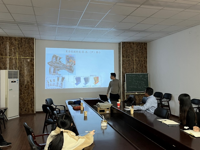 周波副教授针对湍流燃烧在能源和动力推进领域的诸多应用,和作为研究和理解湍流燃烧以及燃烧室精细化设计的重要手段-激光诊断技术展开了讲解。首先介绍了湍流燃烧具有复杂的非定常流动、多尺度时空耦合下的湍流-化学相互作用等特点,以及前沿激光诊断技术在高速、多空问维度、多标量场的测量以及面向复杂燃烧环境测量的技术应用拓展。其次,举例介绍了上述前沿激光诊断技术如何增进对湍流燃烧的理解,并重点探讨了未来技术手段发展与面向真实燃烧室条件下湍流燃烧研究的结合。与会师生针对报告内容与周波副教授进行交流,对相关问题进行了热烈的讨论。