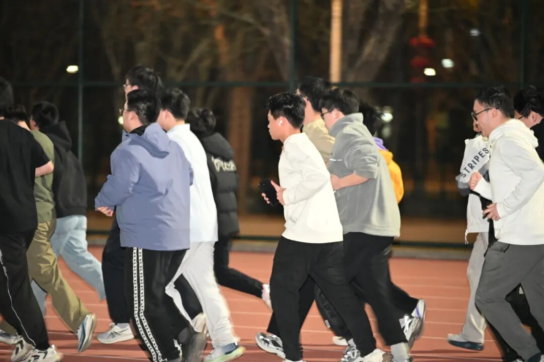 除此之外,本次活动期间,辅导员们也参与其中,与同学们在操场上一同开展运动打卡。辅导员蒋俊林带领本科2025级同学开展夜跑打卡,带领同学们融入春日节奏,在奔跑中增强体能、磨炼意志,引导大家逐步养成规律运动的良好习惯。此举进一步营造了积极向上的集体运动氛围,更有效激发了同学们的参与热情。